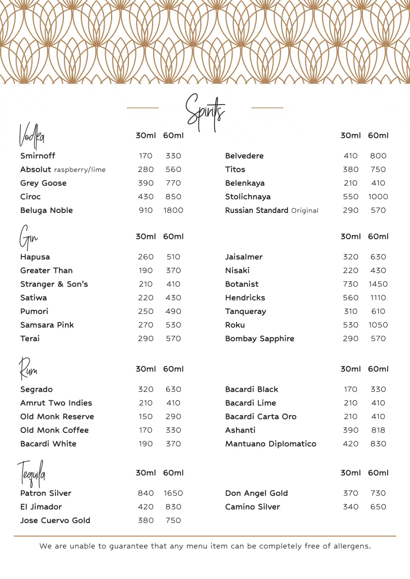 Bar Menu